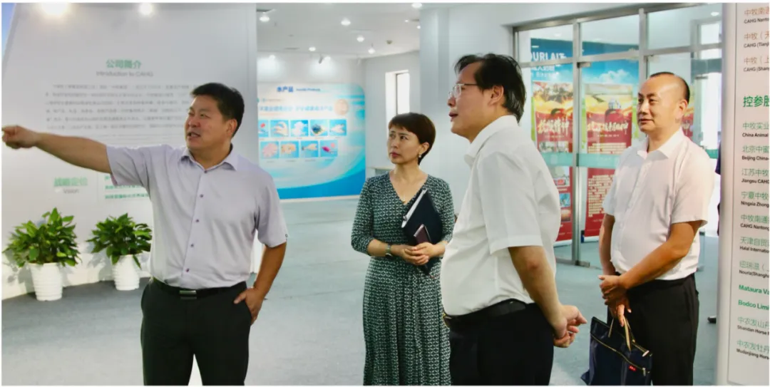 中牧集团党委书记、董事长、总经理杨青春对张义豪一行的到来表示热烈欢迎,并陪同前往公司展示展销中心参观,向来访领导介绍公司管理架构、主营业务等情况。参观过程中,张义豪深入了解了公司蜂产品、乳制品、肉品等各类产品的功能效用及品牌营销情况。